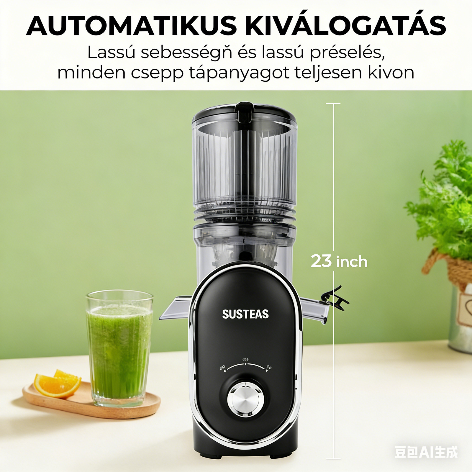 Nincs t?bb l¨¦pazarl¨¢s! Nagy hozam, 13,7 cm sz¨¦les adagol¨®cs? kihagyja az apr¨ªt¨¢st, a lass¨² pr¨¦sel¨¦s meg?rzi a t¨¢panyagokat, k?nnyen tiszt¨ªthat¨®.